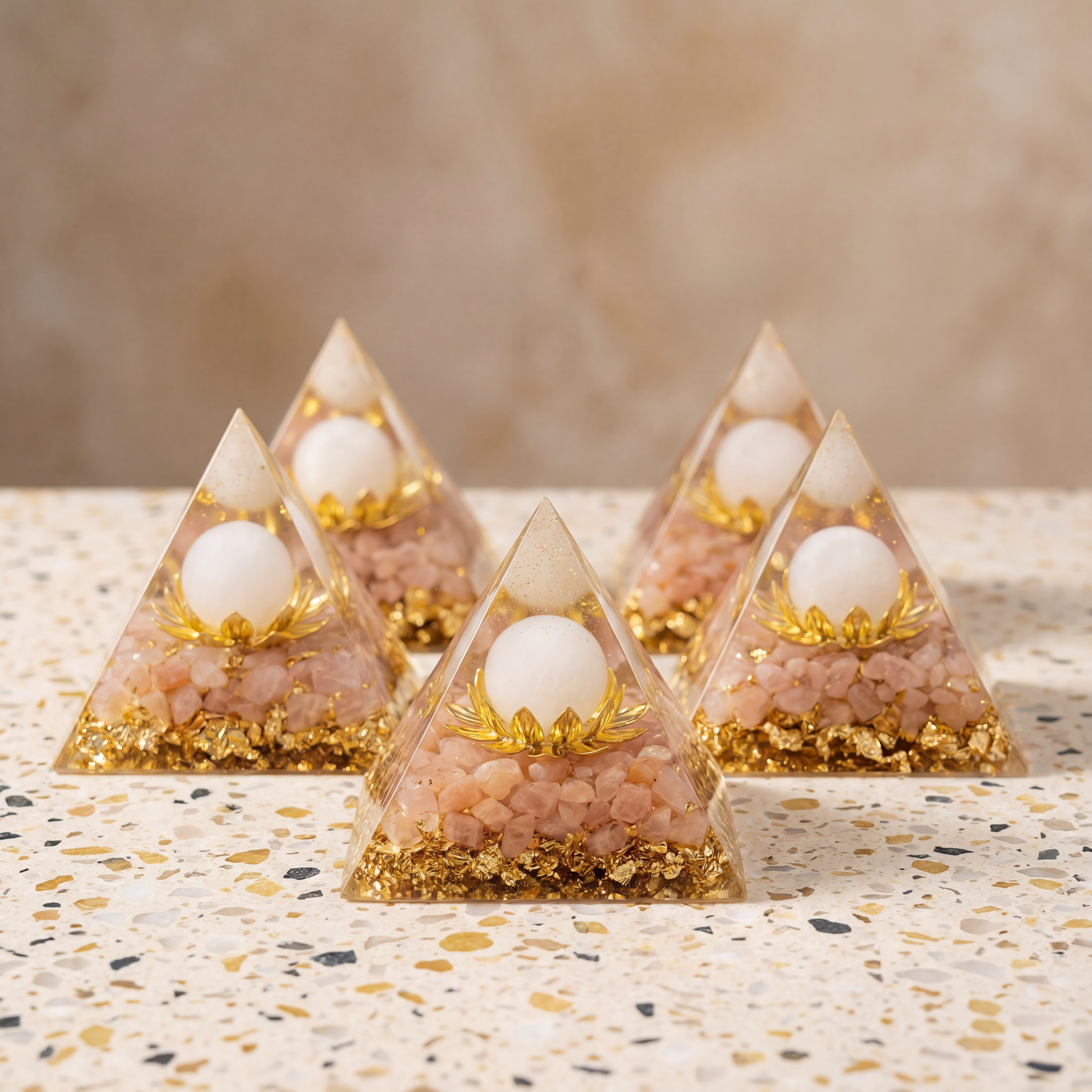 Rose quartz dissolves your "not enough" wounds while white quartz anchors unshakeable self-worth. Golden flakes channel love abundance, sacred leaf geometry amplifies your heart's magnetism. This pyramid doesn't just heal—it turns you into the love you attract.
